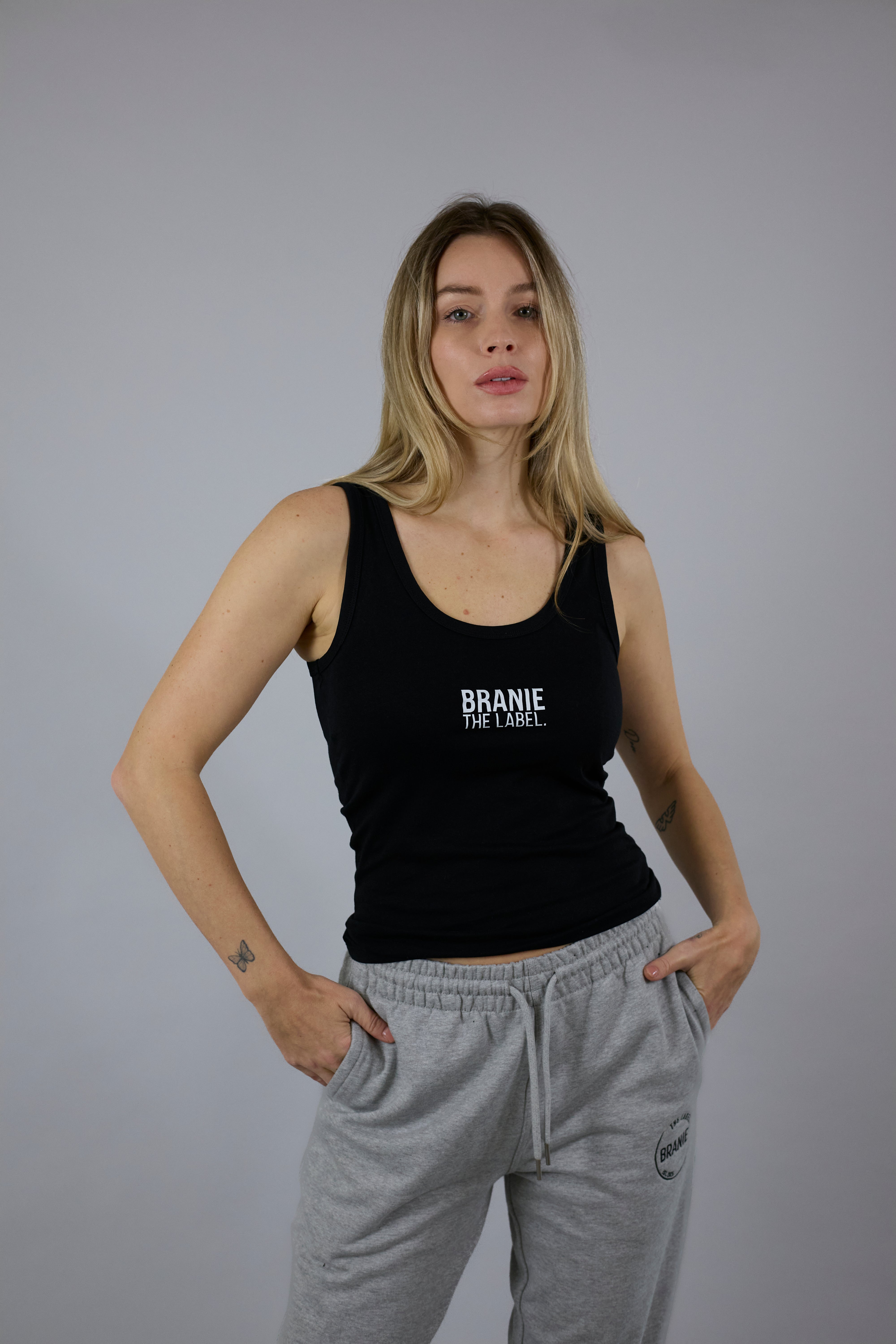 The Essential Tank is a clean, sleeveless staple crafted from 100% organic cotton (180 g/m²). It features a structured 1x1 rib finish at the collar and armholes, an overlock seam at the back neck and double-needle stitching at the hem. Softly washed for a natural feel and effortless wear. Finished with our wordmark printed on the front.